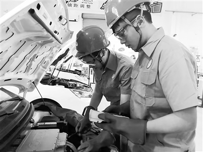 顺德职业技术学院学生在实训中心检测新能源汽车。资料图片